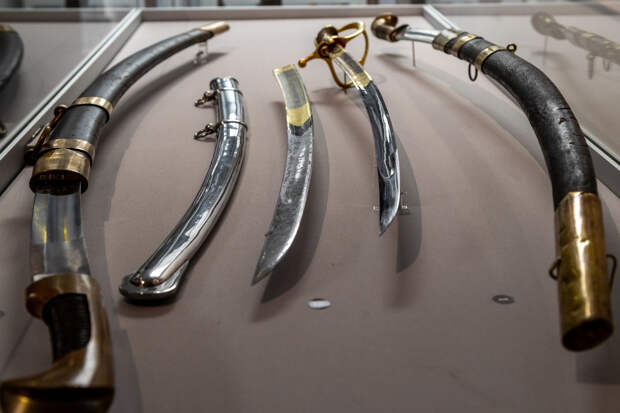 Значительная часть экспонатов никогда раньше не выставлялась. Сабли, кинжалы, пики Открытие выставки приурочили к 250-летию формирования Донской и Чугуевской казачьих команд, которые затем располагались в Царском селе. «Пушкинцы знают, что казачьи казармы сохранились до сих пор. Надеюсь, что когда-нибудь они будут восстановлены и, может быть, там даже появится музей казачества, посвященный их славным традициям», - сказала генеральный директор ГМЗ «Царское село» Ольга Таратынова. Выставка, которая была задумана больше двух лет назад, рассказывает о зарождении казачества, быте мирного времени, обмундировании и вооружении казачьих войск, а также их участии в войнах XVIII - начала XX века. В числе экспонатов - образцы казачьего обмундирования и вооружения, в том числе сабли, шашки, кинжалы и даже пики. Одна из них - длиной более трех метров представлена в экспозиции. Неподалеку – шашка знаменитого атамана Якова Бакланова, известного тем, что он разрубал всадника пополам от плеча до луки седла.Еще один раритет – нагайка донского казака Василия Сысоева, который чуть не высек любимца Наполеона Мюрата. Во время войны 1812 года французский маршал, отделившись от свиты, поднялся на холм, чтобы рассмотреть в зрительную трубу расположение русских войск.