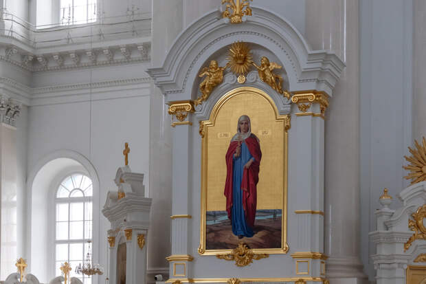 - Что можно отметить по другим объектам? - Среди малых архитектурных форм есть еще интересный, можно сказать уникальный, элемент - хрустальная балюстрада. Традиционно иконостас находится на некотором возвышении, к нему ведет несколько ступеней, они часто огораживаются невысоким заборчиком – балюстрадой. К сожалению, она была утрачена бесследно. Существует несколько версий. Например, что часть материала была использована для украшения станции метро «Автово» но точной информации нет. Сам факт ее существования и внешний вид дошел до нас благодаря архивным фотографиям. Надеемся, что в будущем этот элемент тоже удастся восстановить. Отдельное направление – воссоздание икон. До наших дней сохранилась лишь одна икона собора. Это образ начала XIX века «Предстательство Богородицы» с необычной иконографией - на ней изображен Смольный монастырь и смолянки, принадлежащий кисти знаменитого русского художника Алексея Венецианова. Она находится в фондах Русского музея. Сохраняется надежда найти оригиналы некоторых святынь, возможно за пределами нашего Отечества и вернуть их на законное место. Отмечу, что прошлым летом уникальное пространство в подвалах собора стало просветительским и выставочным местом. Это большие помещения с пятиметровыми сводами и современным ремонтом, где проводятся выставки, мастер-классы, встречи с молодежью. Назвали его – «Подцерковье». Например, недавно с помощью Фонда содействия восстановлению объектов истории и культуры Санкт-Петербурга и Фонда Михаила Абрамова состоялся был показ редчайших икон из частных коллекций Москвы. Многие их них ранее не экспонировались широкой аудитории. Мы видим большой интерес к подобным мероприятия.