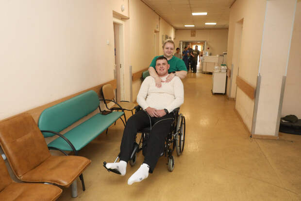 «Благословите женщину» - такие слова редко услышишь из уст сдержанных докторов. Ранение В медицинской документации указаны ранения Александра, перечисление которых займет страницу. Сложнейших, тяжелейших и для пациента, и для врачей, которые изо всех сил боролись за каждый миллиметр его тела. «Александр Гущев перенес тяжелое сочетанное ранение головы, груди, живота с повреждением и грудной, и брюшной полости, обширного повреждения таза и конечностей. Действительно, ранение было очень тяжелое, он прошел более 30 оперативных вмешательств в различных медицинских учреждениях нашей страны, значительная часть - в военно-медицинской академии, из которой он уже был переведен к нам в госпиталь. Это были тяжелые этапные операции и на конечностях, и на органах таза, и на брюшной полости, и на мочевыводящих путях. Крайне тяжелый пациент с осложнениями, но благодаря нашей командной работе и врачам на всех этапах все справились и получили неплохой результат», - рассказывает Тимофей Горшинин, замначальника госпиталя по хирургии, доктор медицинских наук. В госпитале для ветеранов войн Александр находится с 23 сентября 2023 года — почти два года. И два года в больничной палате с ним неотлучно находится его жена Марина «Такая значительная поддержка со стороны его жены помогла ему выстоять. Да, наш мир часто очень жесток. Но, знаете, когда смотришь на такие отношения, просто веришь в человека, в человеческие качества, душевность, заботу. Как говорится, благословите женщину», - прокомментировал заведующий отделением.«Главное, чтобы рядом» Марина улыбчивая, скромная, тихая. Но не отходит от своего Саши никуда. «Саша работал охранником на Челябинском металлургическом заводе вахтовым методом, а я — в поселковой администрации. Познакомились совершенно случайно, на танцах. Я же его старше, у меня дети-подростки, привыкла жить одна. А тут дочка стала уговаривать поехать на дискотеку в соседнюю деревню. Я сначала отказывалась, а потом решилась. И вот на дискотеке он ко мне подошел, пригласил танцевать, потом говорит, можно, я вас провожу? На третий день он приходит ко мне с коробкой конфет с цветами. Ну, вот так как-то все закрутилось», - улыбается Марина. Они вместе уже 10 лет, официальный брак зарегистрирован 21 декабря 2021 года. Уже здесь, в госпитале, 27 мая 2025 года они обвенчались. Александра призвали на СВО 28 сентября 2022 года. «Нет, не было, не было сомнений, идти или не идти. Причем мы живем в одной деревне, а он прописан в другой, и повестка пришла туда. Когда нам позвонили и сказали, что лежит повестка, мы сели в машину и сразу поехали, сами получили в руки повестку. Потому что у него и дед служил, и отец его всегда хотел, чтобы сын был героем, скажем так. Потом отец очень сильно переживал, когда Саша был на СВО, не выдержало его сердце, умер», - рассказывает Марина. Александр Гущев служил в штурмовом отряде 8 месяцев. Ранение получил 23 мая 2023 года. «Мне сказали: руки и ноги целы, остальное вас не должно сейчас волновать. Мне дали услышать его голос, сказали, что через пару дней он перезвонит - и на этом все. Прошло пару дней, а звонка нет. Я знаю, что он в любом случае должен позвонить, потому что это такой человек, который не может мне не позвонить. У нас были группы в соцсетях с женами, мы всегда были на связи. И я обратилась в группу к девочкам помочь его найти. И нашли в Белгор